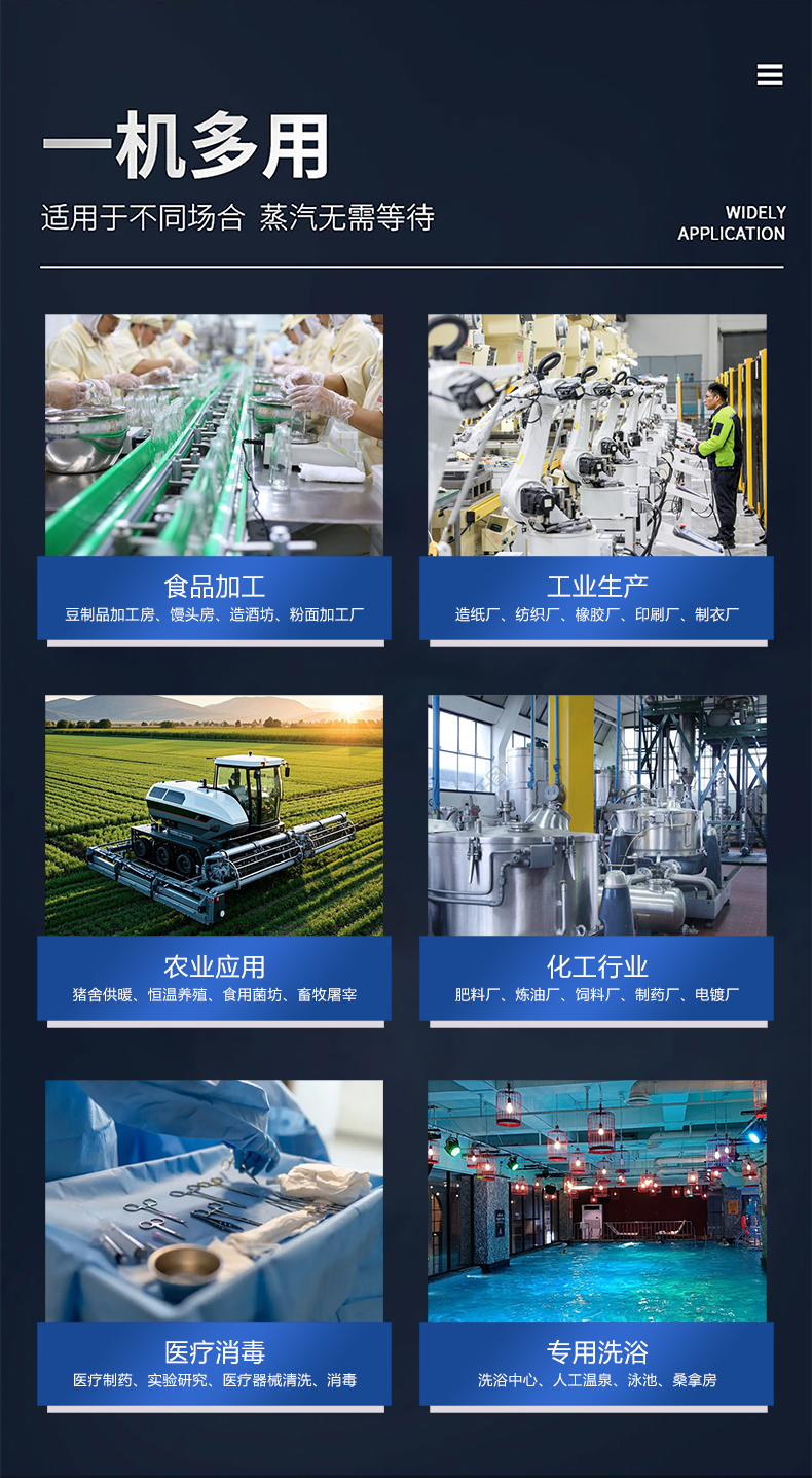 蒸汽量:50kg至6T,无内胆,水容积<29L、产汽快、免报检,低氮燃烧NOx排放<22mg/m³,符合环保要求,310S不锈钢过流件直流环管结构,达到卫生级别,温度、压力、可定制,更多参数可致电15323300918...