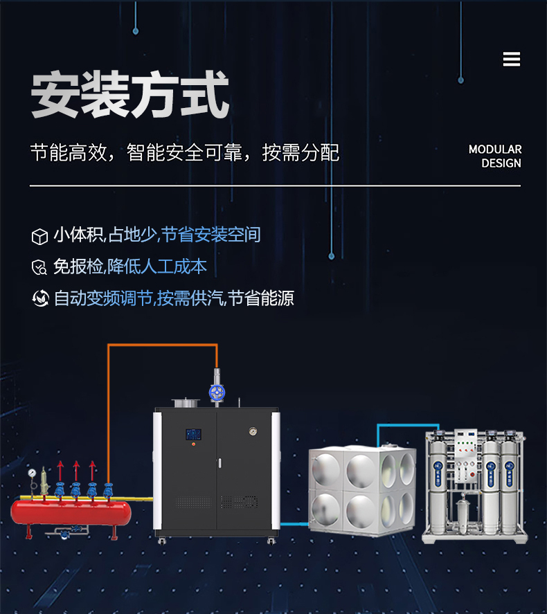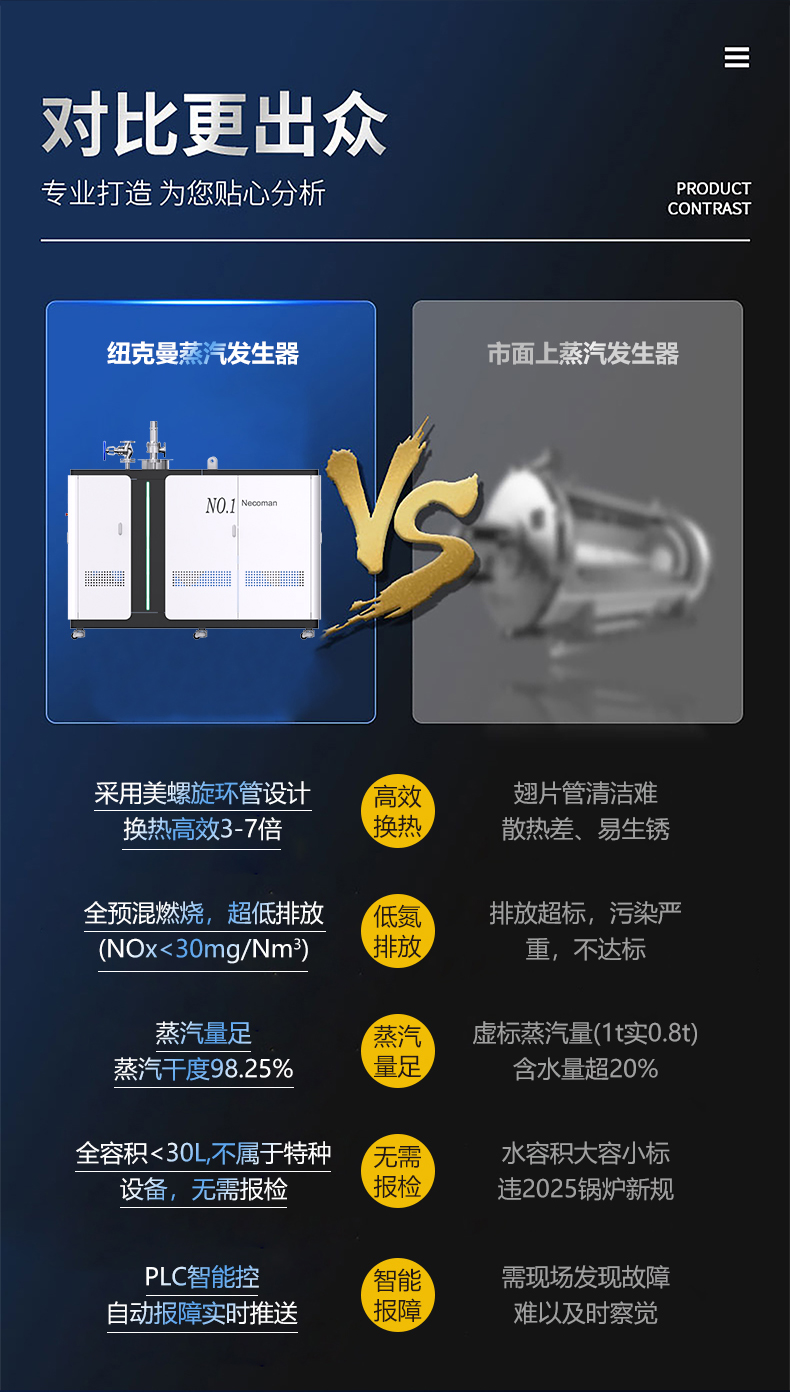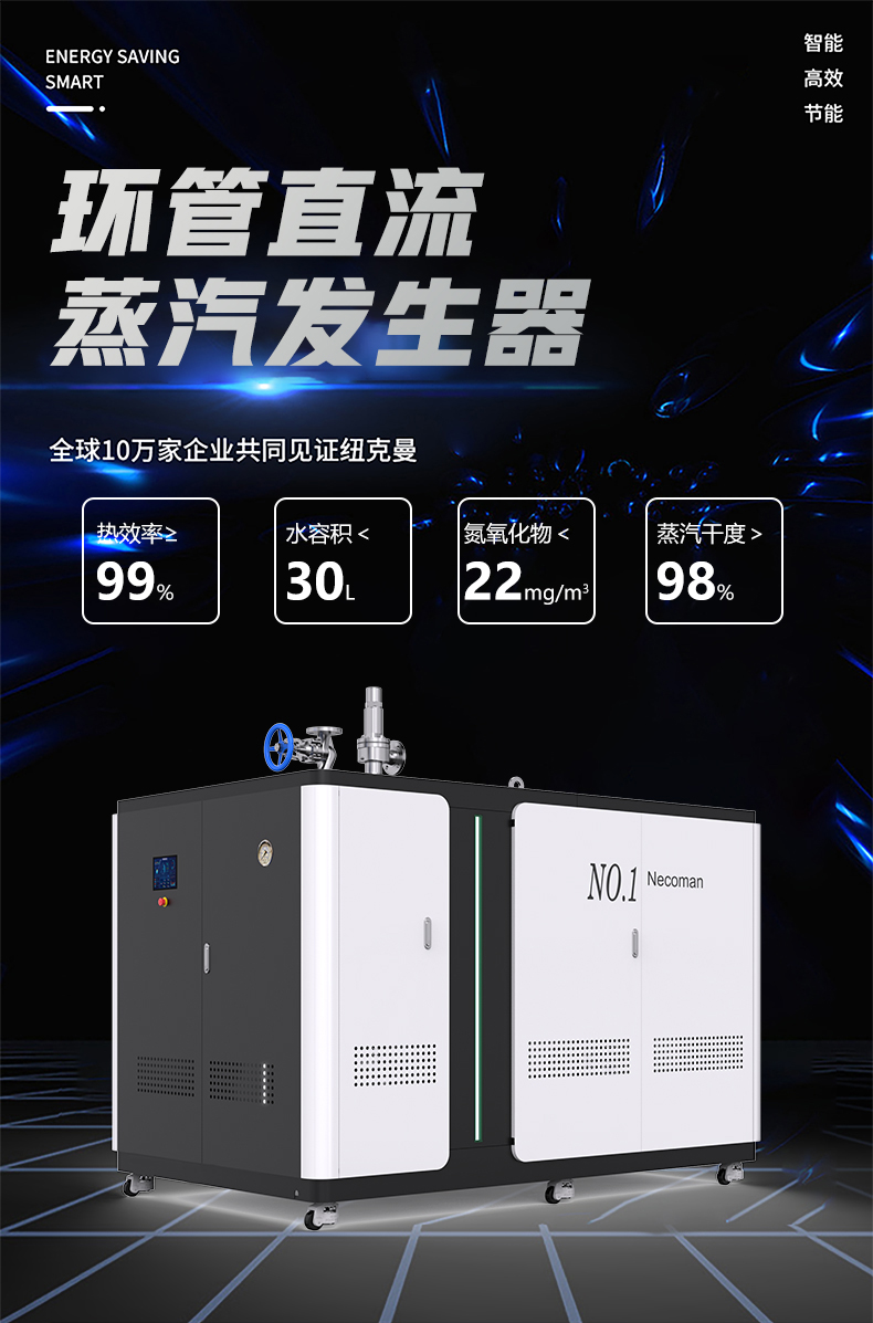 蒸汽量:50kg至6T,无内胆,水容积<29L、产汽快、免报检,低氮燃烧NOx排放<22mg/m³,符合环保要求,310S不锈钢过流件直流环管结构,达到卫生级别,温度、压力、可定制,更多参数可致电15323300918...